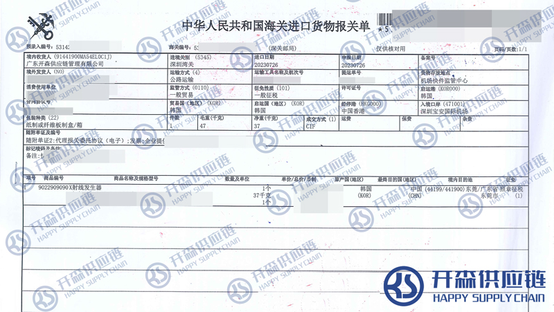深圳機場韓國X射線設(shè)備進口報關(guān)代理服務(wù)【清關(guān)案例】