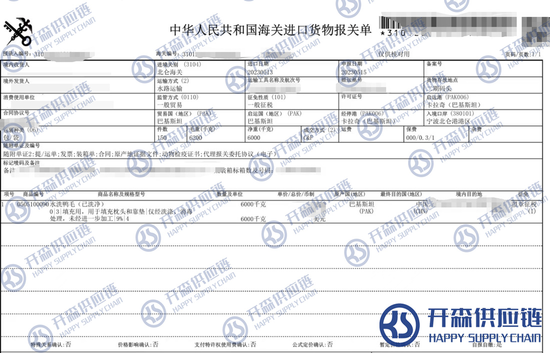 一、寧波港巴基斯坦水洗鴨毛進(jìn)口報(bào)關(guān)代理案例詳情