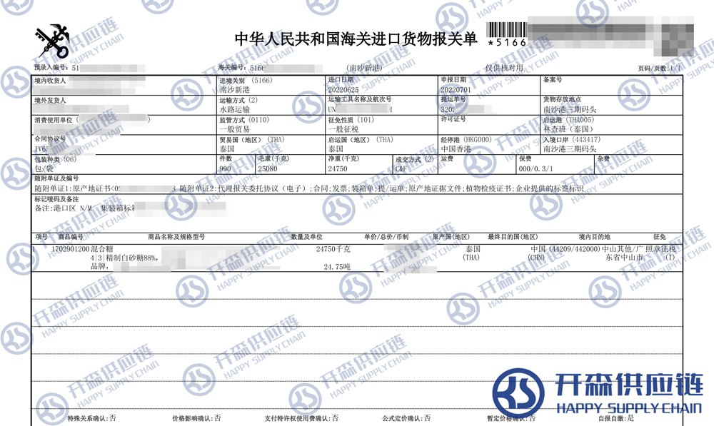 一、泰國混合糖進(jìn)口報關(guān)代理案例詳情