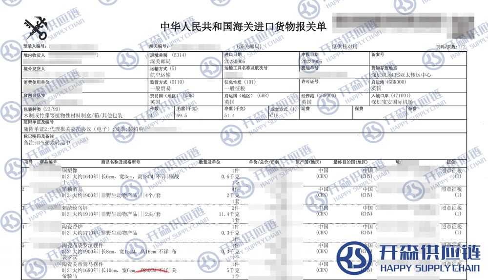 開(kāi)森進(jìn)口供應(yīng)鏈擁有古董藝術(shù)品進(jìn)口報(bào)關(guān)操作經(jīng)驗(yàn)及案例,十余年操作經(jīng)驗(yàn)及案例可供參考,可按需定制古董藝術(shù)品進(jìn)口方案,幫助客戶(hù)解決進(jìn)口難題,快速進(jìn)口清關(guān)到港到貨。